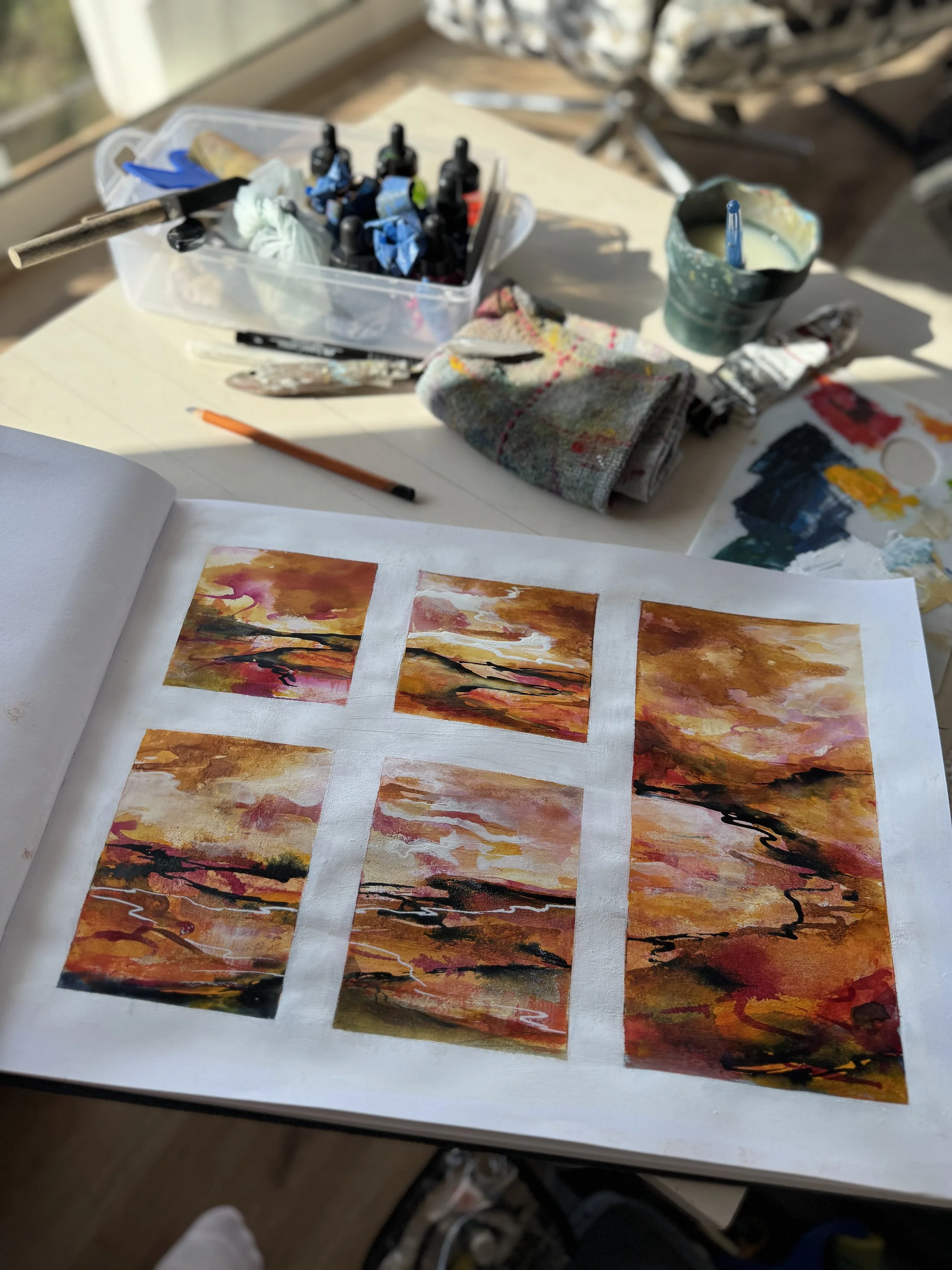 When we use our sketchbooks as a place for play, something magical happens, we enter a state of flow, where time disappears and we become fully immersed in the activity. Through this playful exploration we learn more about our materials, techniques and creative instincts than we ever could through rote practice.